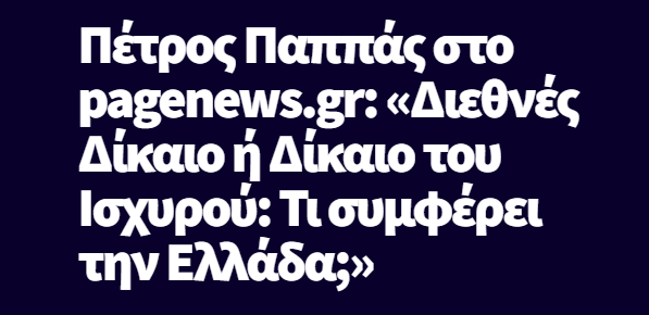 Ειδικά για την Ελλάδα, μια χώρα που αντιμετωπίζει διαχρονικά απειλές και αμφισβητήσεις από γειτονικά κράτη, η στάση αυτή δεν είναι απλώς ιδεολογική επιλογή, αλλά ζήτημα εθνικού συμφέροντος. Και όσοι σπεύδουν, με ατυχείς δηλώσεις, να… αναβάλουν την εφαρμογή του διεθνούς δικαίου, δεν προσφέρουν καλή υπηρεσία στην πατρίδα. Η σταθερή και χωρίς εξαιρέσεις προσήλωση στο διεθνές δίκαιο αποτελεί τη μόνη αξιόπιστη ασπίδα απέναντι στην αυθαιρεσία. Σε έναν κόσμο που δοκιμάζεται, η συνέπεια στις αρχές είναι τελικά η πιο ισχυρή μορφή πολιτικής.