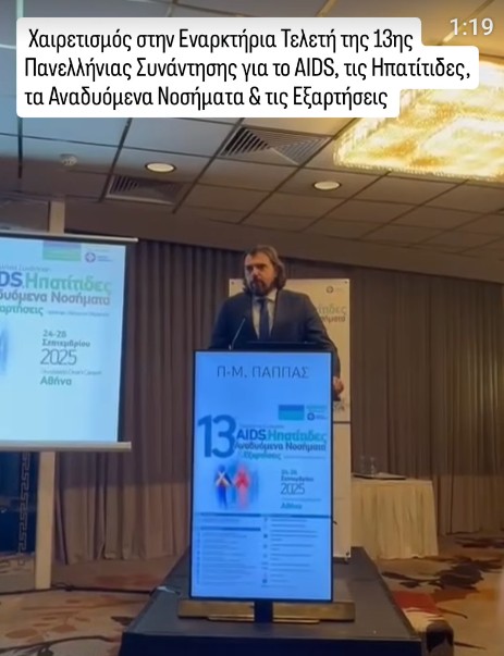 Εναρκτήρια Τελετή της 13ης Πανελλήνιας Συνάντησης για το AIDS, τις Ηπατίτιδες, τα Αναδυόμενα Νοσήματα & τις Εξαρτήσεις