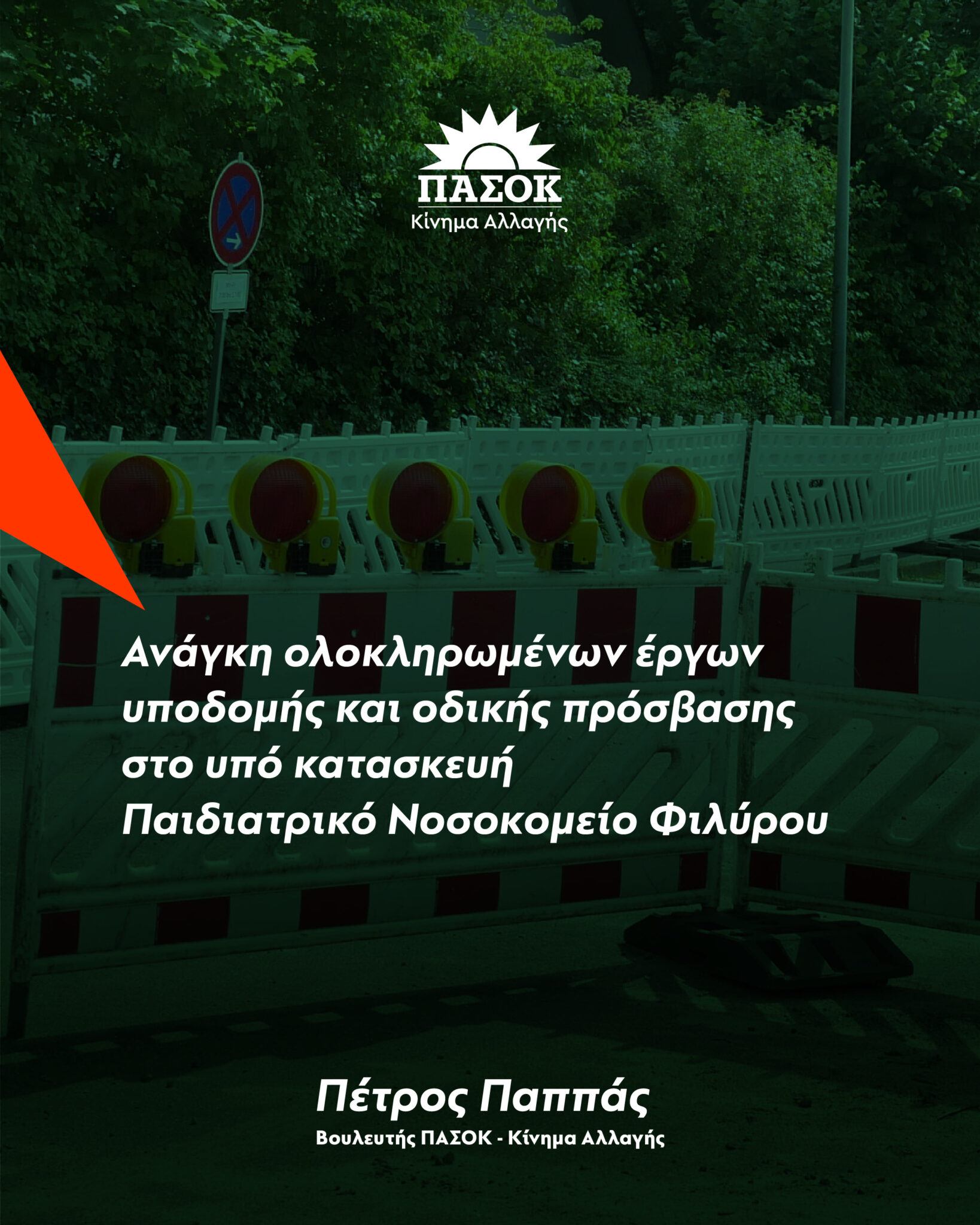 Ζήτησα από τον Υπουργό Υποδομών και Μεταφορών να μεριμνήσει ώστε η ολοκλήρωση του νέου Παιδιατρικού Νοσοκομείου Φιλύρου να συνοδευτεί από ασφαλή και σύγχρονη οδική πρόσβαση. Στην ερώτησή μου επεσήμανα ότι οι υφιστάμενοι δρόμοι είναι παλιοί, στενοί, επικίνδυνοι και πλημμυρίζουν σε ακραία καιρικά φαινόμενα, γεγονός που θέτει σε κίνδυνο ασθενείς, εργαζομένους και οχήματα έκτακτης ανάγκης. Ζήτησα να μάθω αν το Υπουργείο θα προχωρήσει σε συνολικό σχέδιο έργων υποδομής, ποιες άμεσες παρεμβάσεις θα γίνουν στους υφιστάμενους άξονες και ποιο είναι το χρονοδιάγραμμα του ανισόπεδου κόμβου Κ6 που είναι κρίσιμος για την ασφαλή πρόσβαση στο Νοσοκομείο.
